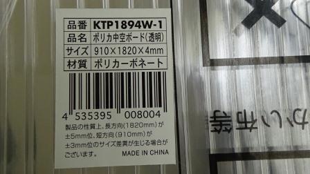 ポリカ中空ボード 幅91cm×厚さ4mm×長さ182cm =2,138円