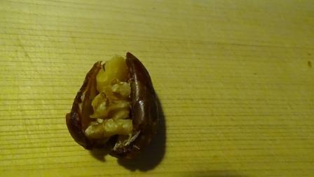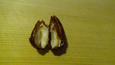 デーツは半分に割ると中が空洞になっているので、クルミを手で割って挟みます。