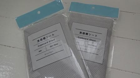 ガラスの棚なので、汚れ防止や滑り止めとして食器棚シートを敷いています。