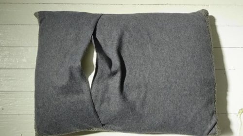 ビックリするほど寝相が良くない、ワンズ1号のベットにどうかなぁと思って購入していた、ニトリの“ゆったりサイズ ポリエステルまくら 大判(リディー2 HI)”