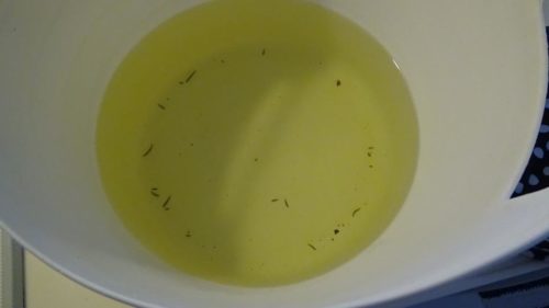 煎じ液は、ほのかに黄緑色。これは足湯用。