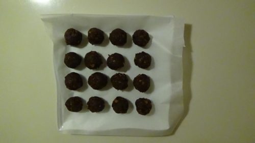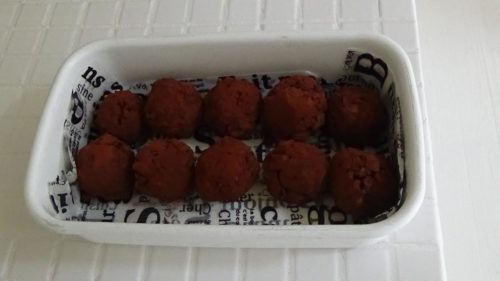 今回は最後にココアをかけて仕上げたけれど、チョコでコーティングすれば本物のチョコラムボールに少し近づくかな。
