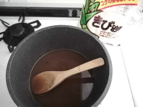 だいたい茹で上がって、きび糖を加えるときはワクワクします。