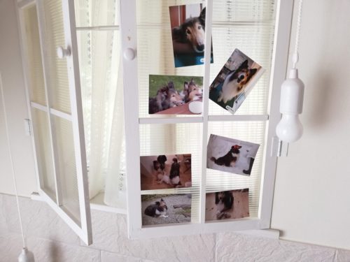 以前作った窓枠の間に写真を挟んで。ワンズ1号ミュージアムにしてみたり。